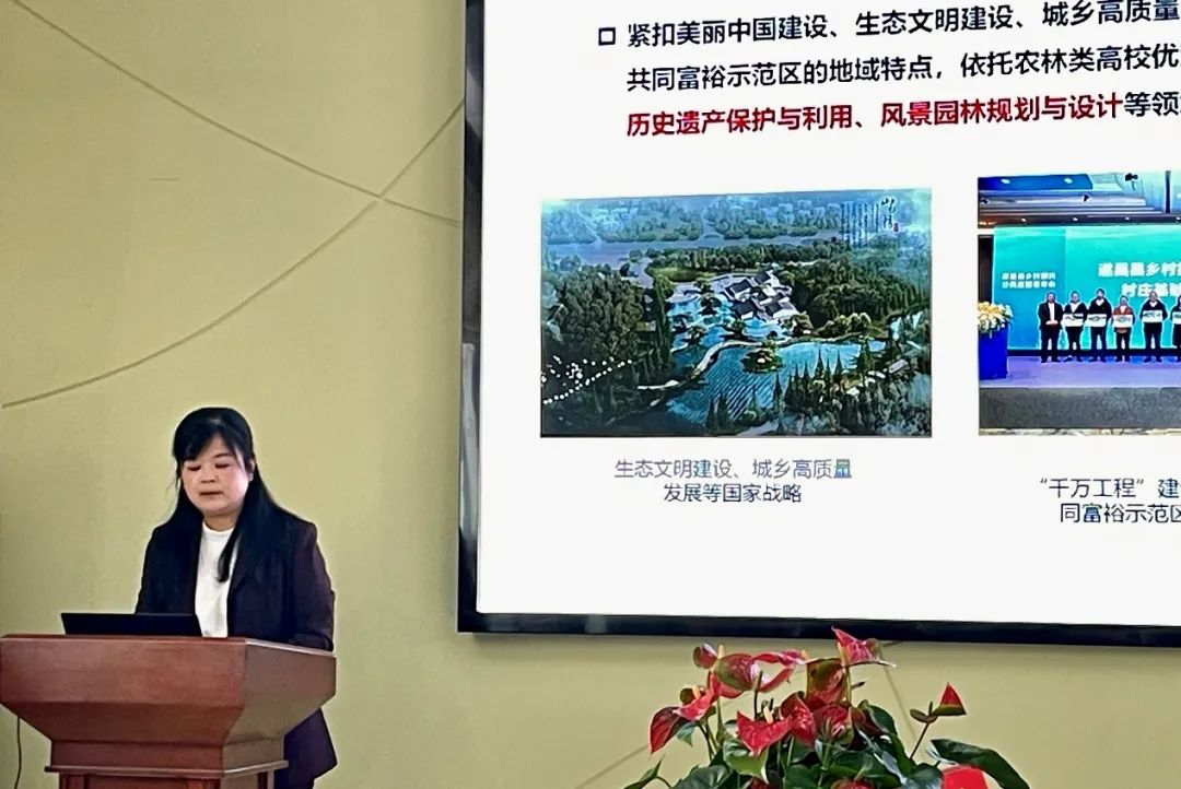 党委书记、城乡规划学学科带头人徐丽华进行了城乡规划学学位点建设汇报,报告对2020至2024年建设周期内学位点的发展定位、研究方向、人才培养、师资队伍、科研成果、实践平台、课程体系、奖助体系、就业发展、社会服务等方面进行了详细介绍。